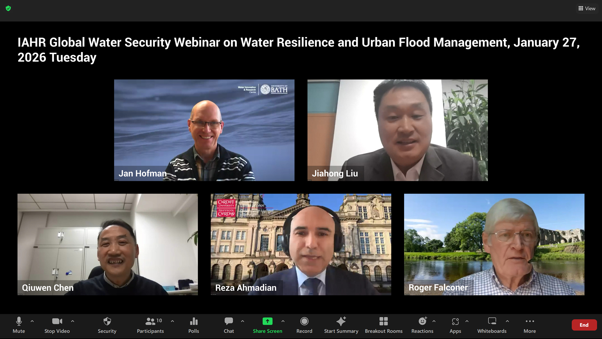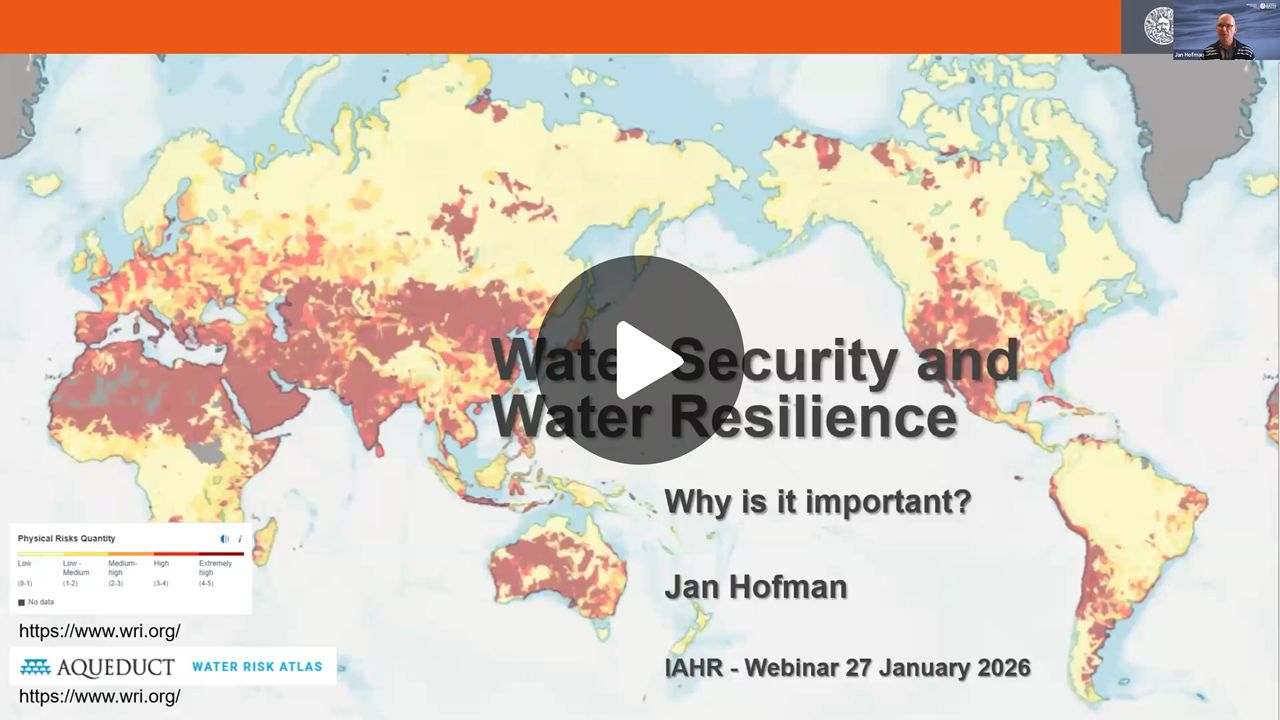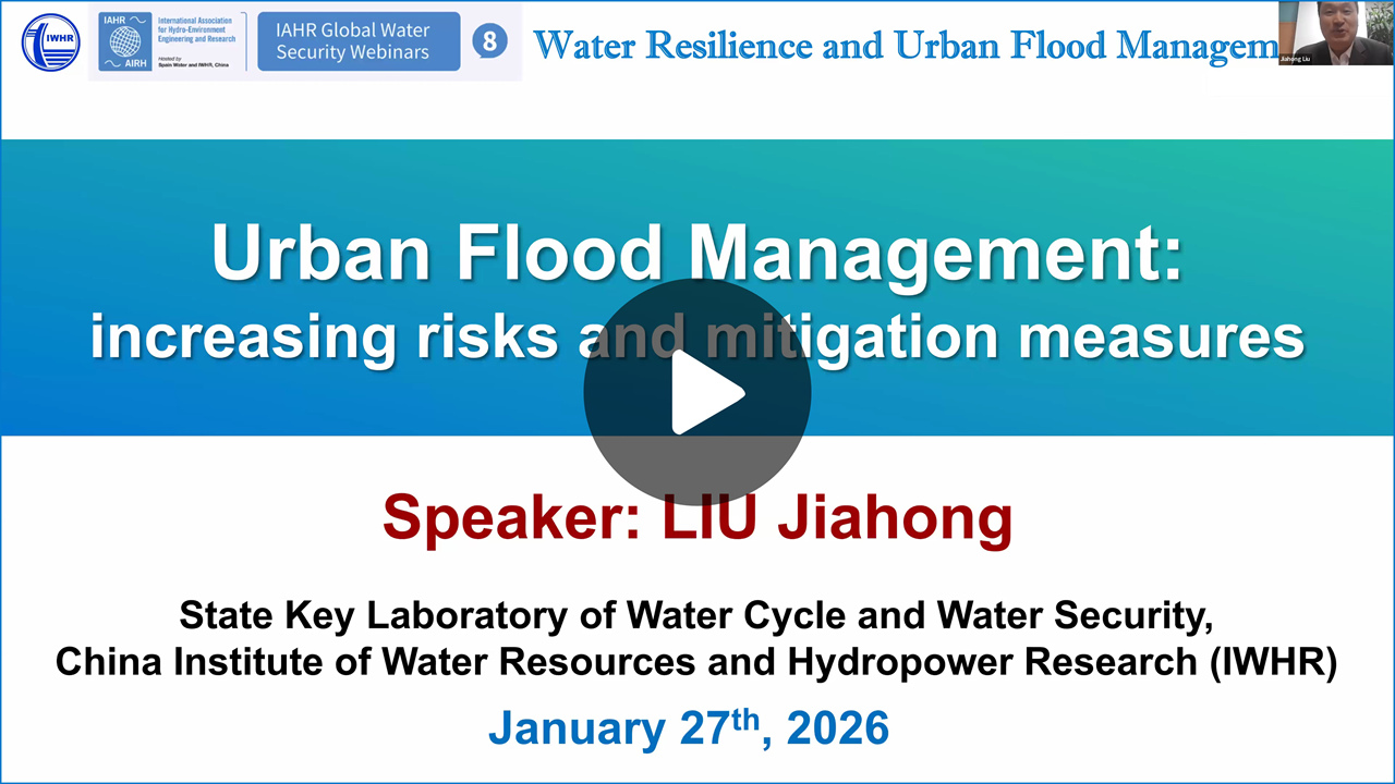 On 27 January 2026, IAHR hosted a Global Water Security webinar focused on water resilience and urban flood management, bringing together experts to discuss the growing challenges posed by climate change, rapid urbanization, and increasing water risks worldwide. The event featured keynote presentations from Jan Hofman (University of Bath) and Jiahong Liu (China Institute of Water Resources and Hydropower Research, IWHR), alongside updates on the IAHR Global Water Security Technical Committee (GWS TC), and was co-chaired by Qiuwen Chen (Nanjing Hydraulic Research Institute) and Reza Ahmadian (Cardiff University).